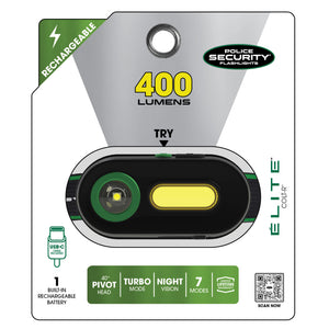 Get ultra-brightness when you need it with Police Security’s 400 Lumen LED Colt R Rechargeable Headlamp. Powerful LED and COB LED chips deliver illumination in several modes, including high, low and turbo modes. The secure, adjustable comfort strap headband stays in place, while a pivoting head lets you control the direction of lighting, making this headlamp versatile for a variety of situations and uses. Includes 1 Li-Polymer Police Security Rechargeable Battery and is backed by Police Security’s Limited Lifetime Warranty.