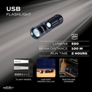 Be prepared for anything on the road with the USB 550 Lumen Car LED Flashlight from Police Security Flashlights—a must-have tool for every driver.