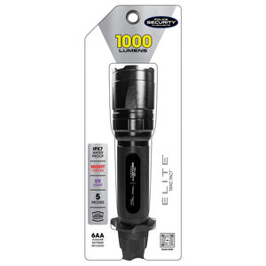 Bring it, Mother Nature. Chase adventure in any light with a tactical flashlight that’s ready for all the outdoor action you can dish out. The Trac Tact 1000 Lumen with 395 NM Flashlight turns pitch black into daylight and takes architectural-grade aluminum to a whole new level. Impact, water, and weather-resistant, it also features roll stop and Soft Switch™ mode-change technology. 6AA batteries power the internal LED chip, which puts out 1000 lumens for up to 5 hours in 5 different modes, including red night vision and blood-tracking 395 nM UV light. Perfect for hunters, campers, climbers, and hikers.