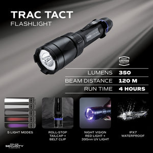 The Trac Tact 350 Lumen Tactical Flashlight with UV Light from Police Security Flashlights is the ideal multi-use flashlight, delivering versatile lighting options, rugged durability, and hands-free convenience for outdoor and tactical professionals.